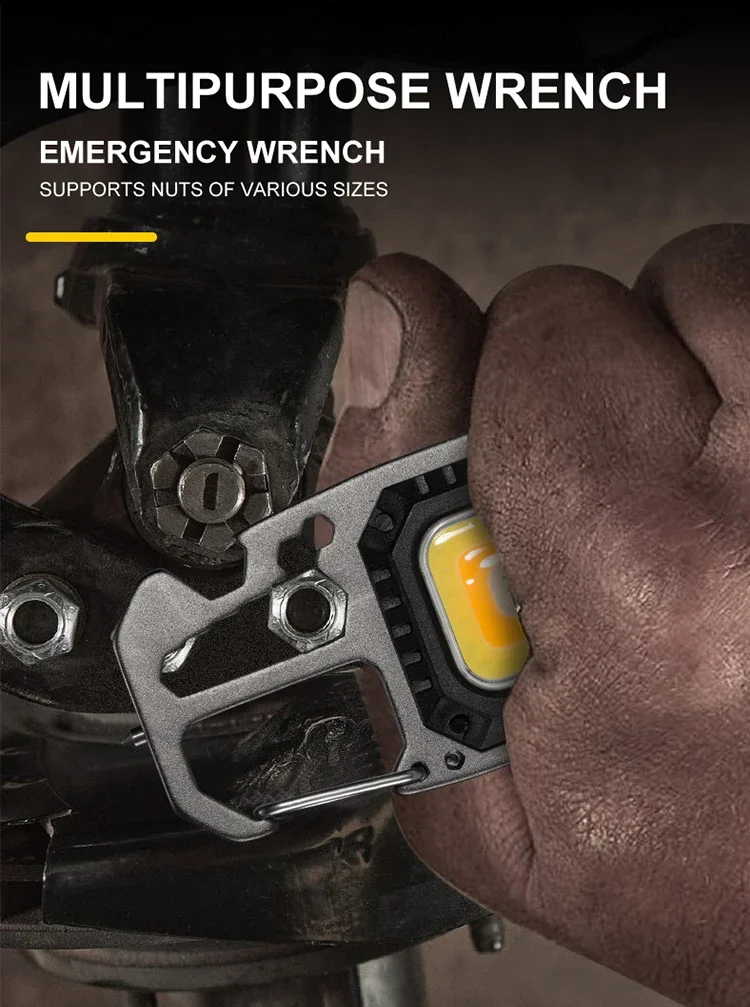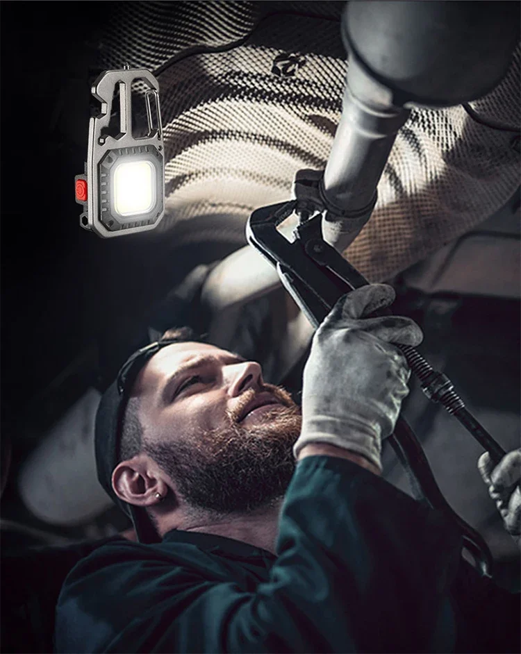 COB Keychain Work Light with Battery Display 8Mode Rechargeable High Lumens Portable LED Light for Camping Hiking Running